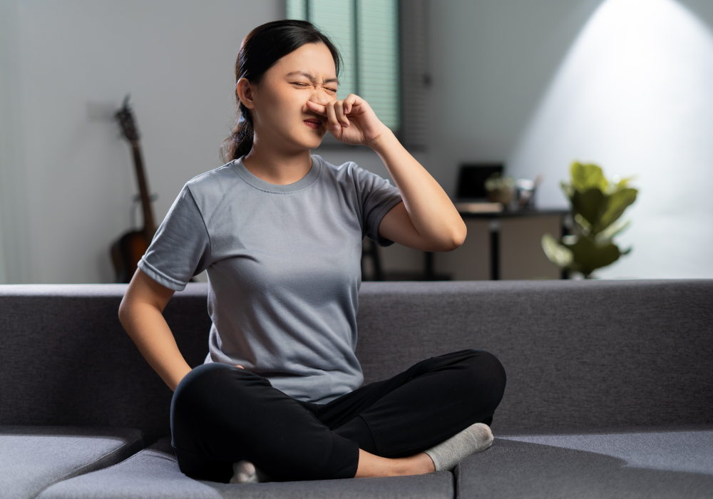 Ruangan lembab dapat dikenali dari bau apek, jamur, udara pengap, dan furnitur yang mudah terasa lembab.